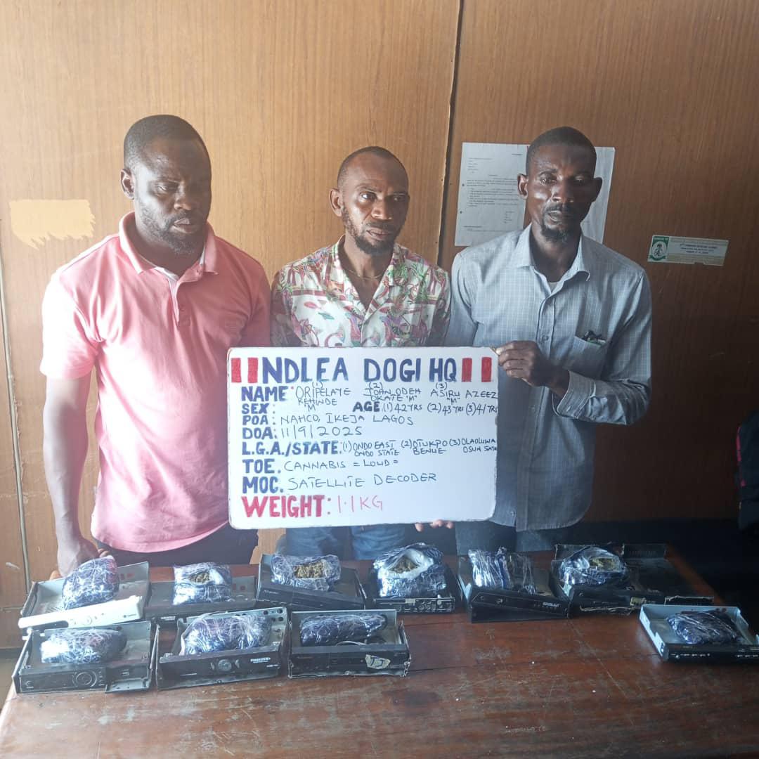 In Yobe, a suspect, Mohammed Auwa, was arrested after 36 blocks of cannabis sativa weighing 22.1kg were recovered from his residence at Gadan Talakawa area of Potiskum, while three trans-border drug traffickers: Kunyadi Kunle Ogbungbun, 24; Olalekan Adewale, 20; and Sanya Joshua,22, were nabbed with 394kg skunk at Imeko area of Ogun State during a joint operation by NDLEA operatives with the police and local vigilante on Sunday, September 7. Three motorcycles used in conveying the illicit consignment were also recovered.