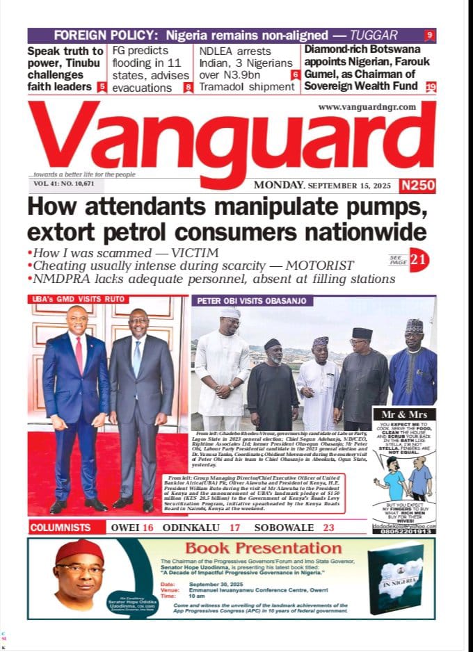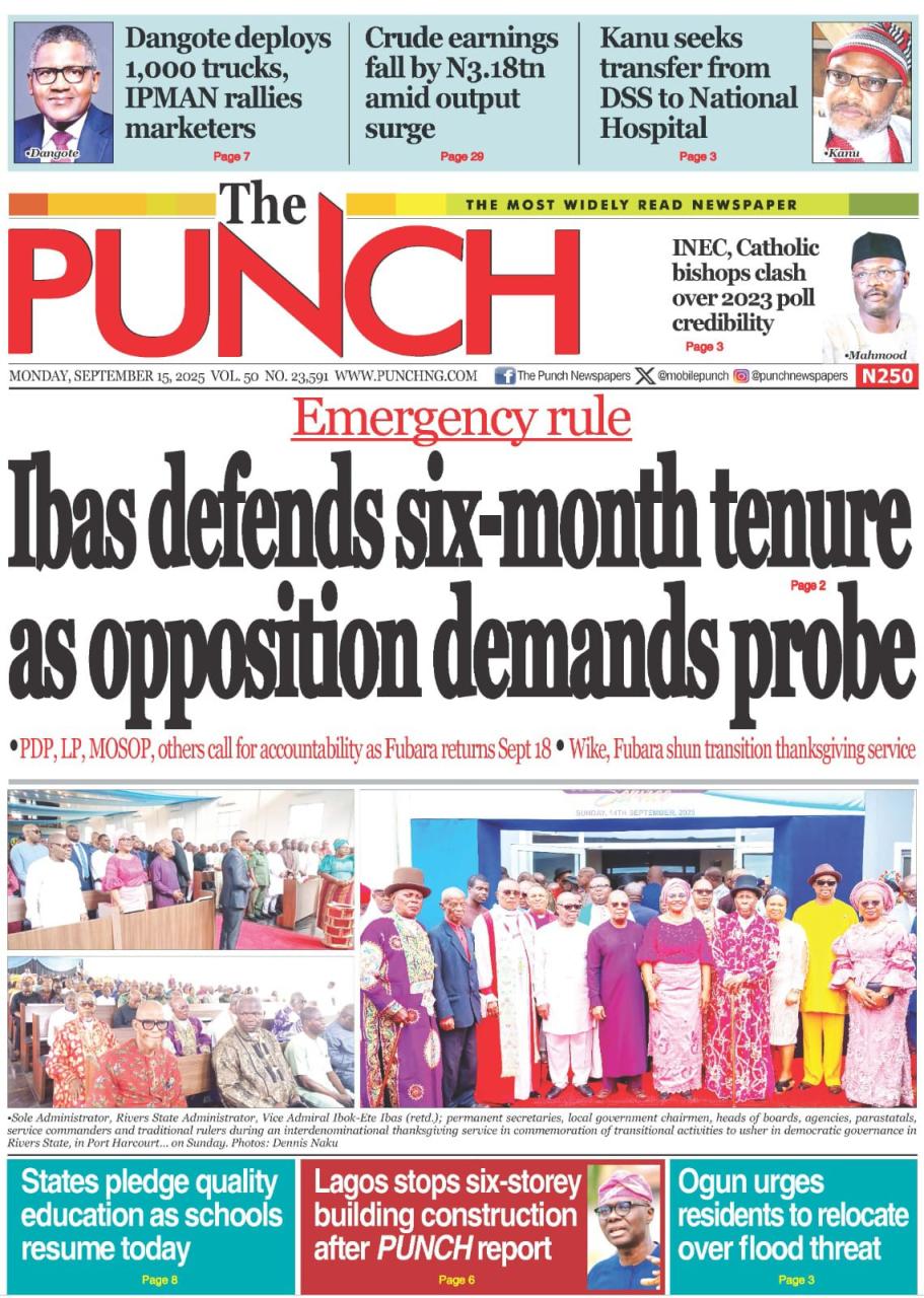 Naija News looks at the top happenings making headlines on the front pages of Nigeria’s national newspapers today, Monday, 15th September, 2025.
