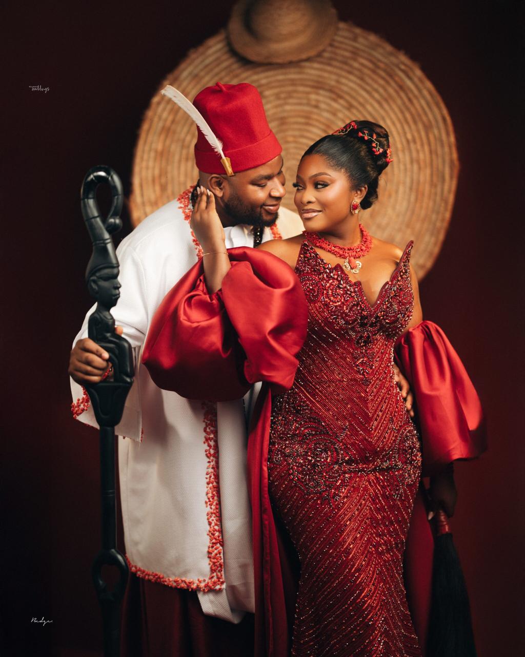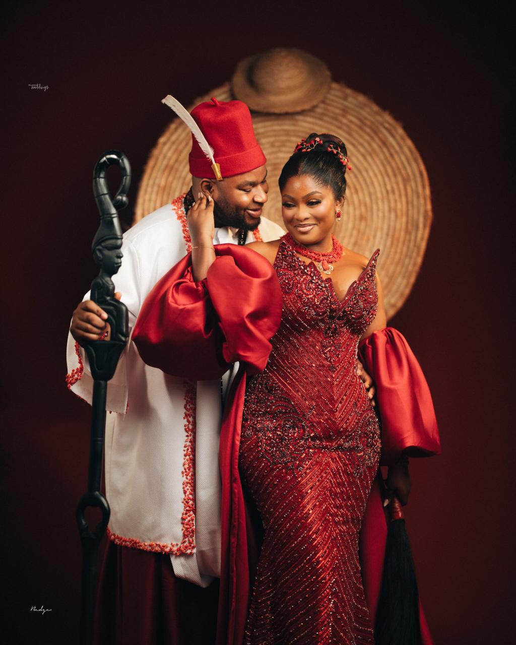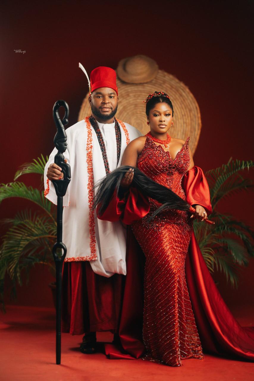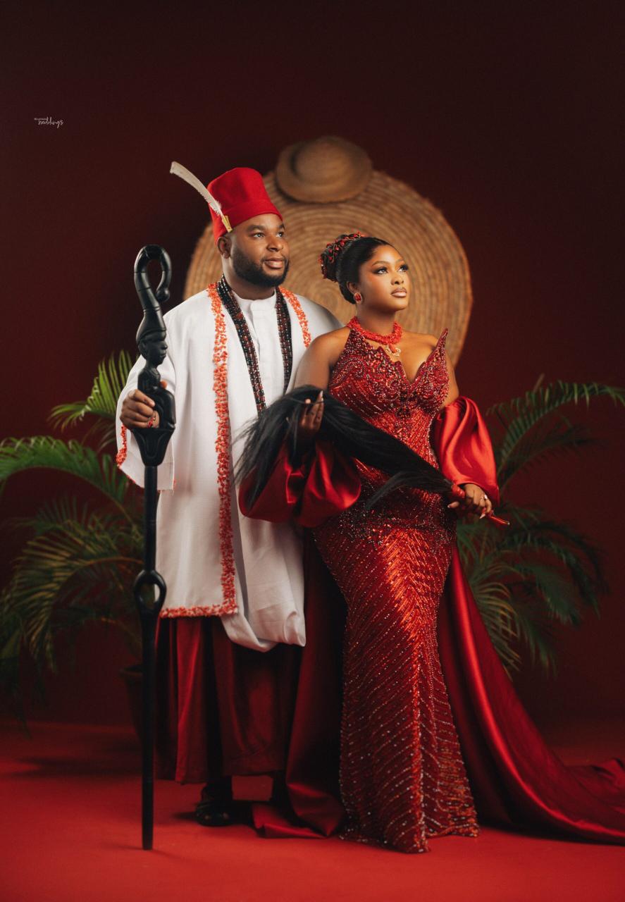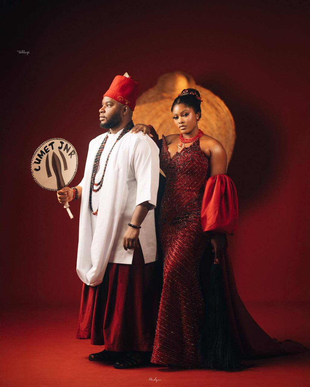 For Dinma, that one decision was choosing to stay a little longer on a dating app… and that’s how she found her person, Alex. What she didn’t know at that time was that he was also about to leave the app. Clearly, their love was meant to be, and destiny was weaving its web! They started talking and soon introduced each other to their families— something they had never done before. A love so beautiful blossomed, and now, the lovely duo are saying yes to forever, just a day before Dinma’s birthday, so romantic! They put so much thought into this radiant pre-wedding shoot, and it speaks volumes about their love. Their electric chemistry shines so effortlessly through these elegant, culturally rich photos, and we honestly can’t get enough.