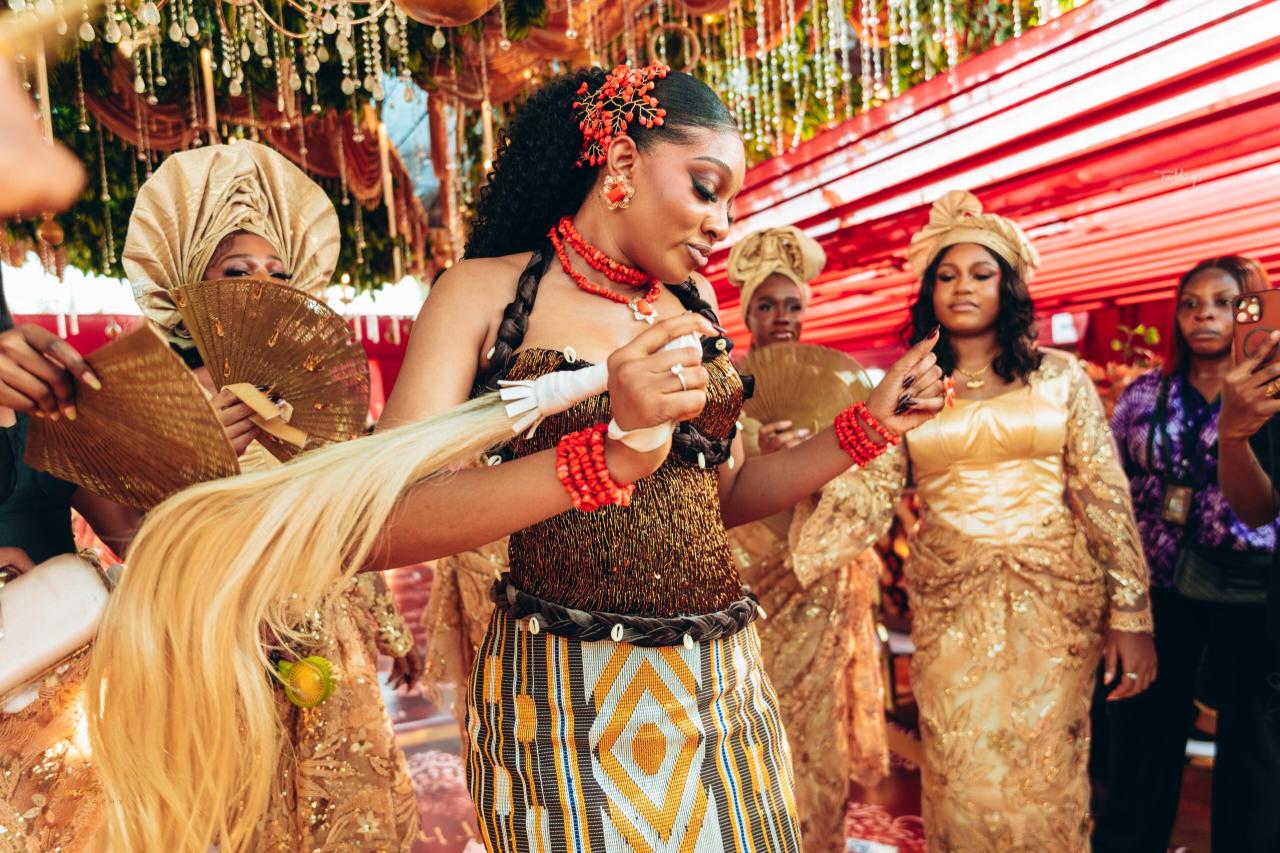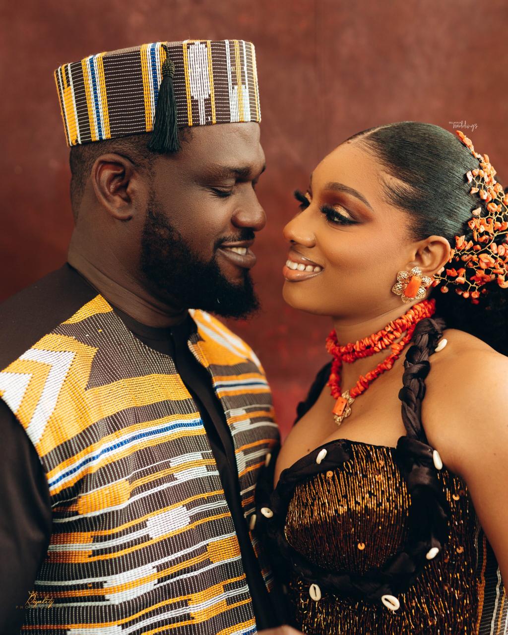 A sibling introduced them, and what they thought would be another casual conversation turned into a deep connection that only grew stronger as the days followed. When they finally met, the sparks only multiplied. The chemistry was undeniable; it was so obvious that they were into each other. Now the lovebirds have sealed their forever love in a beautiful Igbo traditional wedding, filled with so much radiance, love and rich culture. Chizzy made such a stunning bride in her gorgeous Akwete and intricately beaded dresses, while Jazzy looked dapper in his traditional outfits. Love sure looks good on them, and as you scroll through each frame of their gorgeous wedding photos, you will find yourself nodding in agreement with us.