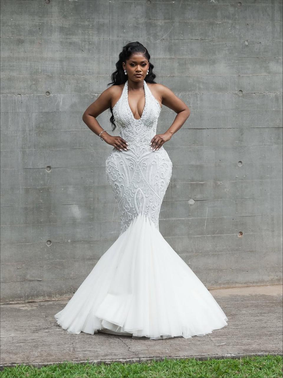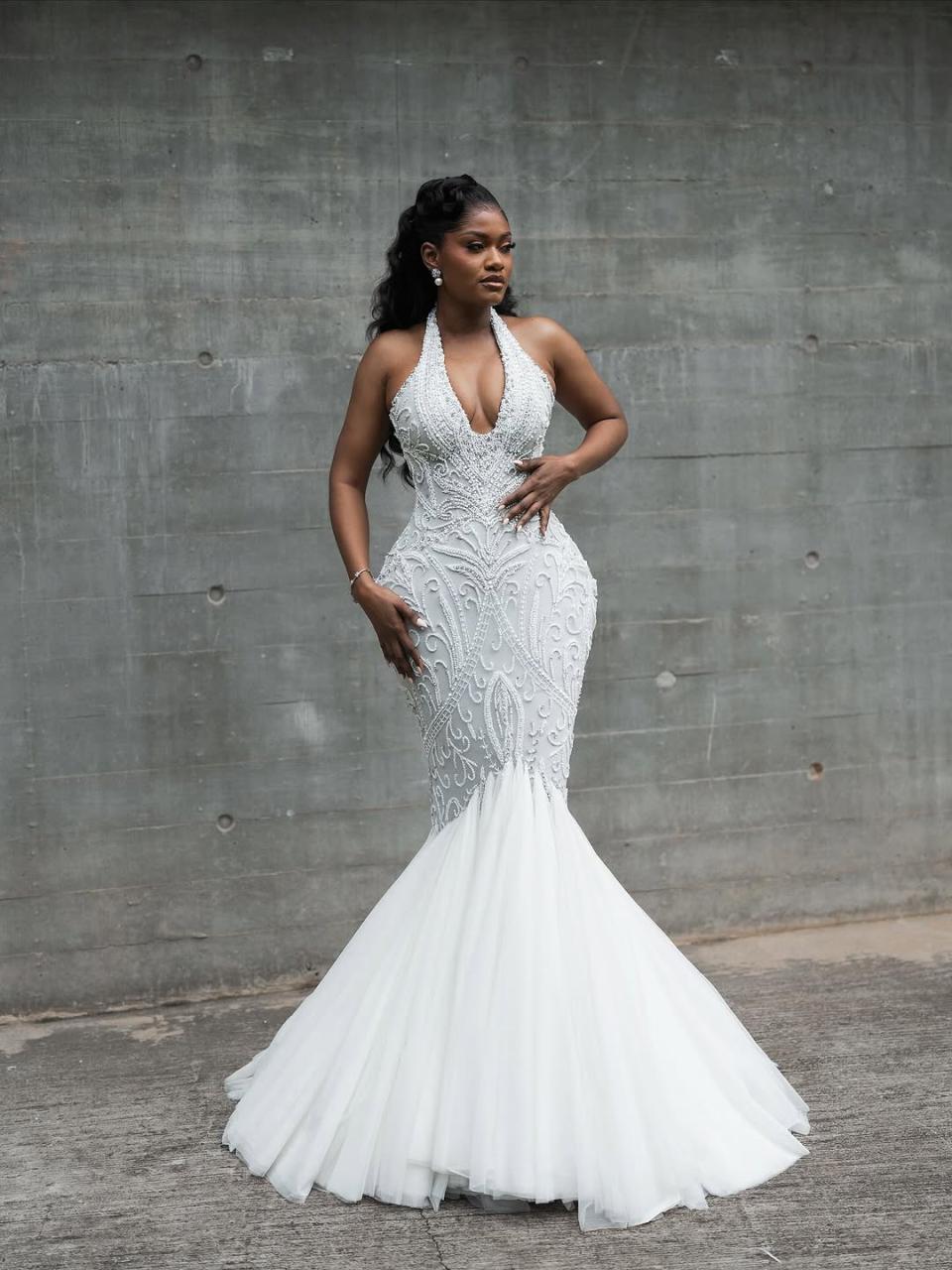 If you want that ethereal yet flattering effect, this dress by Shapes by Nelson might just be your go-to. From the halter deep-plunging neckline, to the intricate patterned beading and to the tulle low-skirt, this ensemble screams bold, feminine luxury. Hairlegance by Mitch styled the hair into a stunning crimped half-up, half-down style, and Minas Makeup Artistry delivered the perfect finishing touch with this beautiful makeup. Big day coming up? Your reception dress worries are over. Elegance shines through every detail of this look and could be the perfect choice for your reception slay.