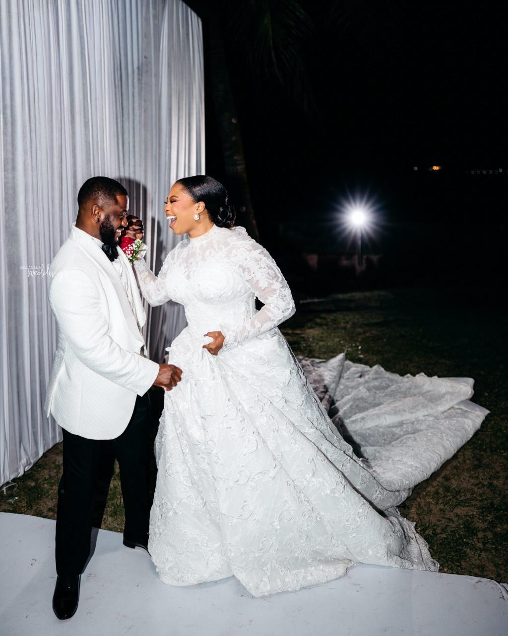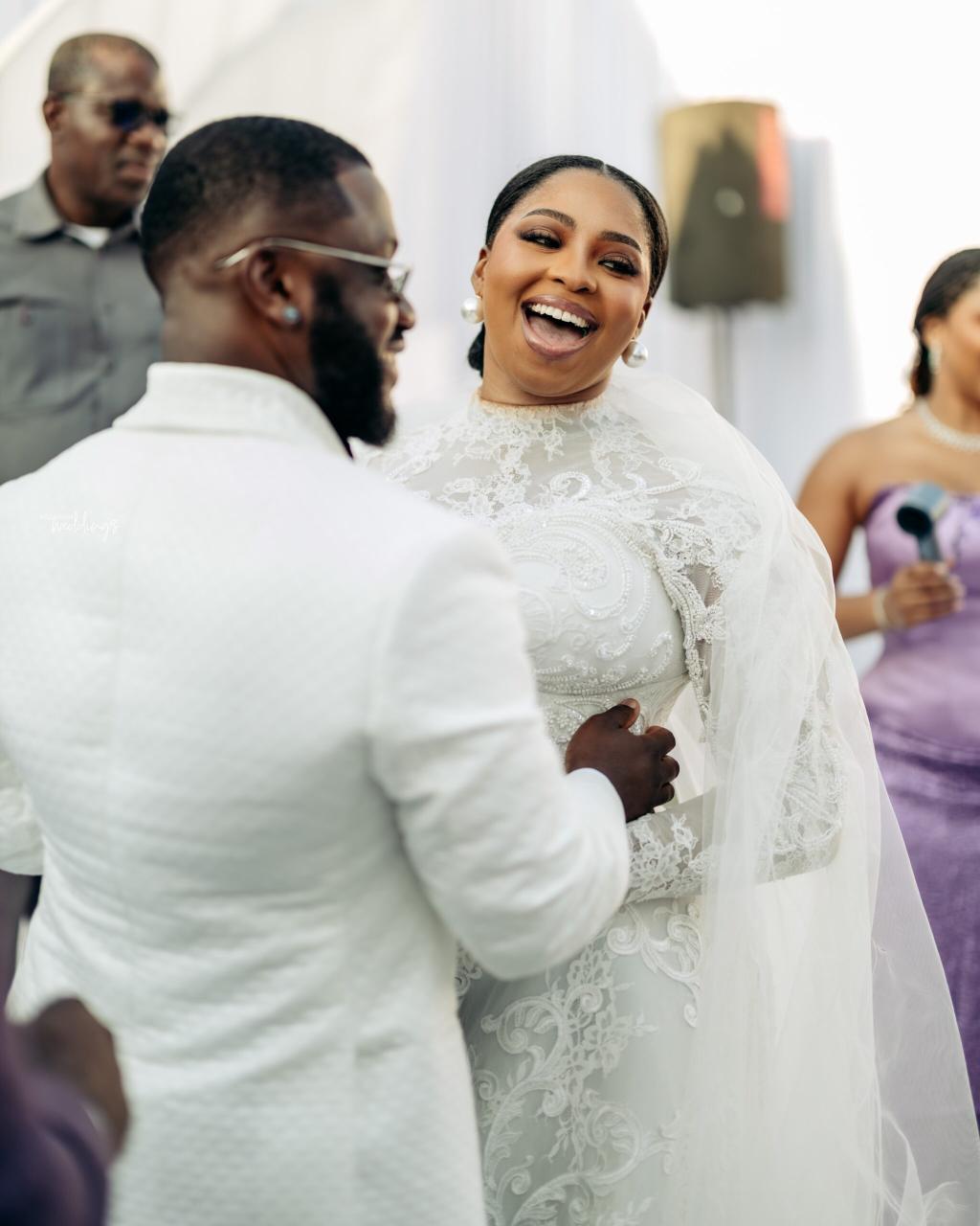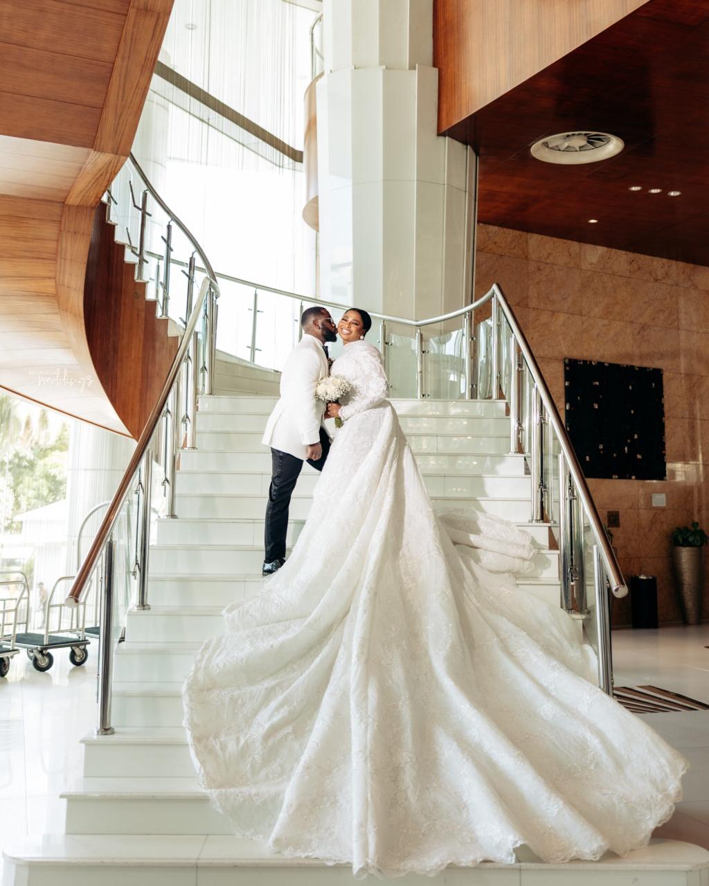 The lovely duo have been giving us all the feels with their stunning pre-wedding and Urhobo-Edo traditional wedding photos, and we are still so thrilled to share even more, now with their enchanting white wedding photos. It was a day filled with so much joy and happiness, you can see it in the lovebirds’ radiant smiles and excited eyes. For this ceremony, Vanessa donned a pristine lace dress with a breathtaking train, and Emmanuel looked effortlessly suave in his crisp suit. Together, they make such a beautiful pair. As they exchanged vows and danced the night away, our hearts filled with so much warmth. Love has beautifully scripted their story from classmates to frenemies, then lovers and now forever soulmates! They have come a long way, and with these lovely wedding photos, we can tell theirs is a love that will never fade. 😍