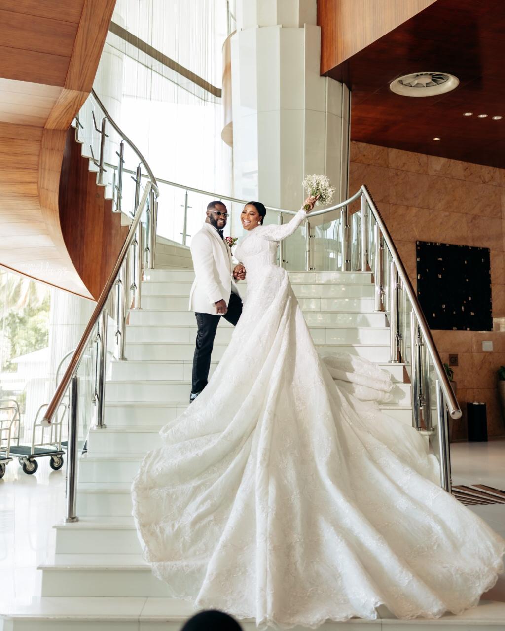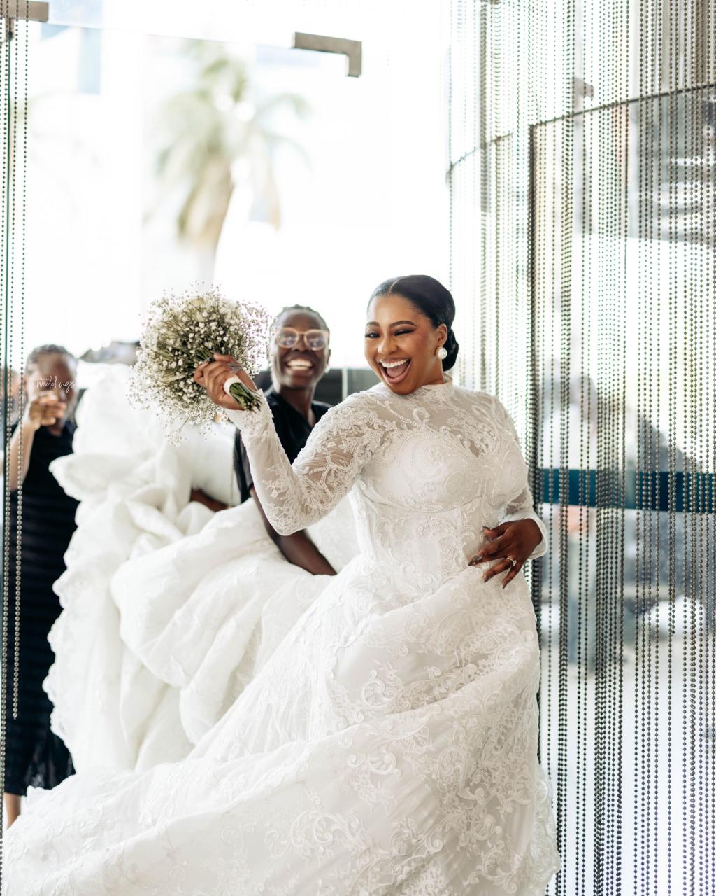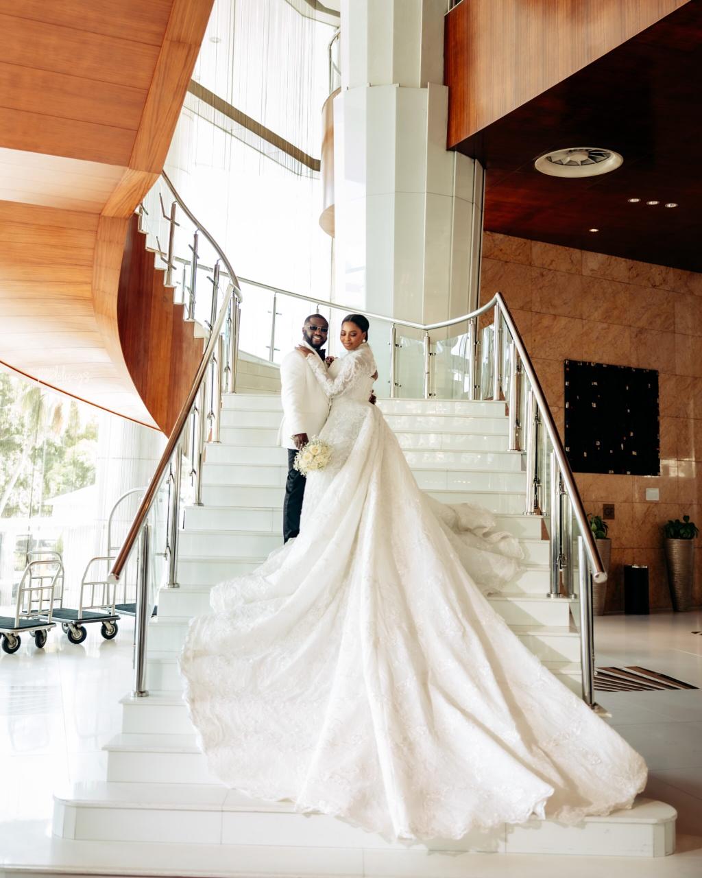 The lovely duo have been giving us all the feels with their stunning pre-wedding and Urhobo-Edo traditional wedding photos, and we are still so thrilled to share even more, now with their enchanting white wedding photos. It was a day filled with so much joy and happiness, you can see it in the lovebirds’ radiant smiles and excited eyes. For this ceremony, Vanessa donned a pristine lace dress with a breathtaking train, and Emmanuel looked effortlessly suave in his crisp suit. Together, they make such a beautiful pair. As they exchanged vows and danced the night away, our hearts filled with so much warmth. Love has beautifully scripted their story from classmates to frenemies, then lovers and now forever soulmates! They have come a long way, and with these lovely wedding photos, we can tell theirs is a love that will never fade. 😍