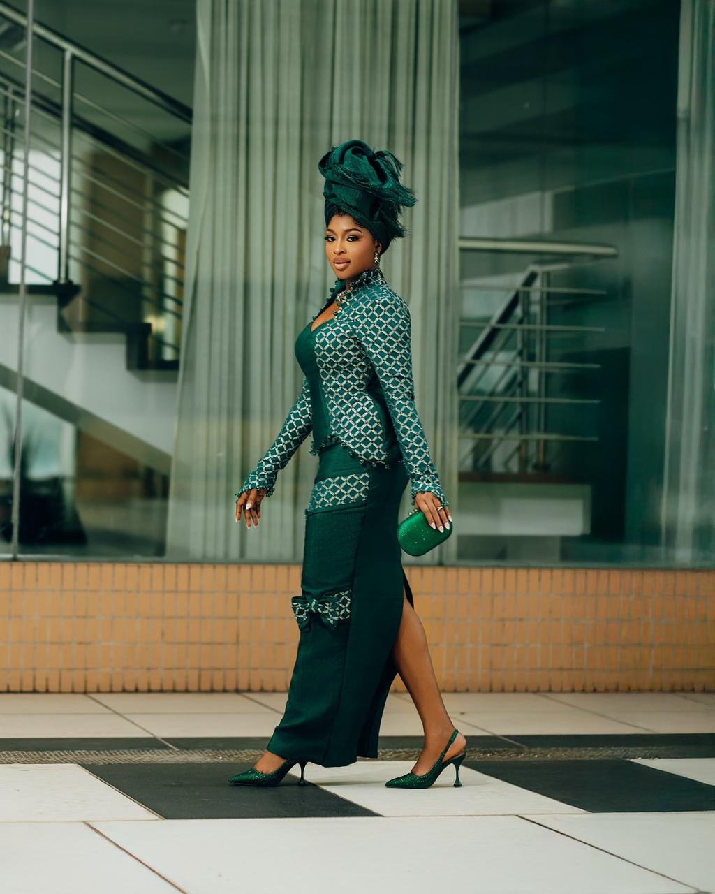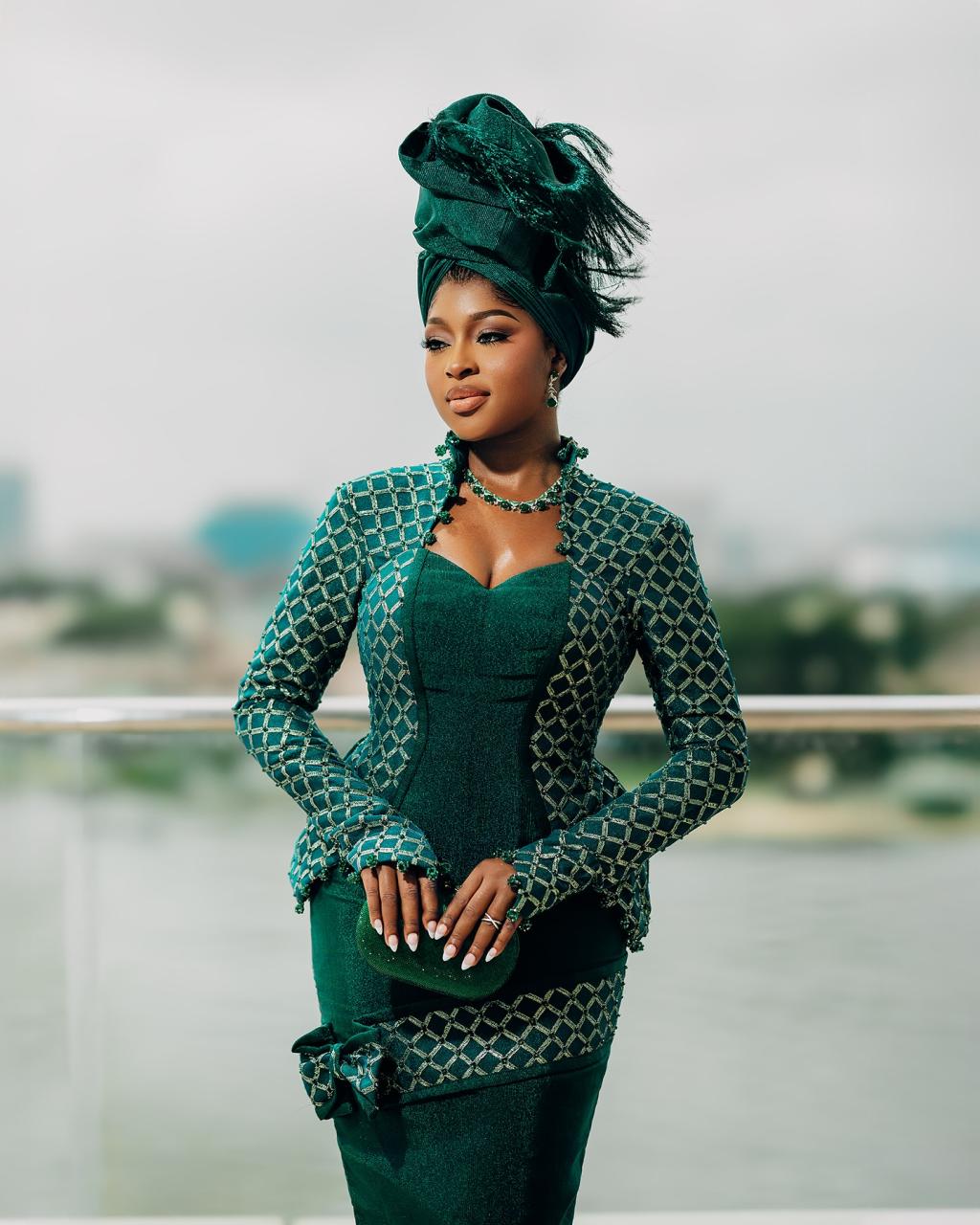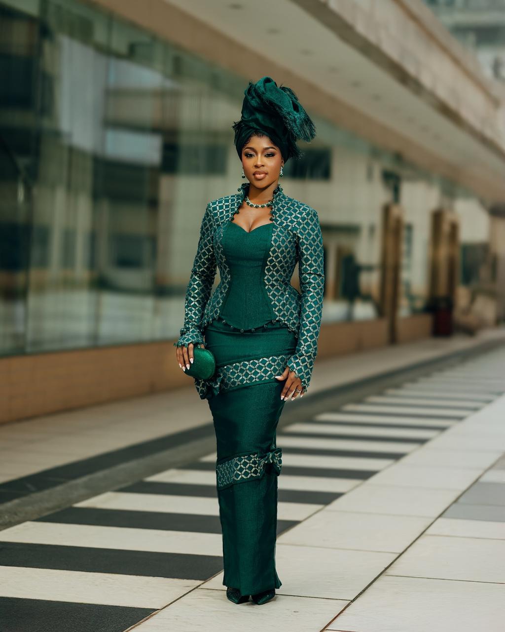 Infused with a modern flair, this green Yoruba traditional wedding look is wrapped in timeless elegance and grace. With the agbada embroidered to perfection and the bridal look’s amazing features, this combination intertwines beautifully into a look that tells a story of rich culture, high glamour and sweet love. You deserve to look like royalty on your Yoruba trad, so this is your sign to let culture and couture crown that special day in grand style.