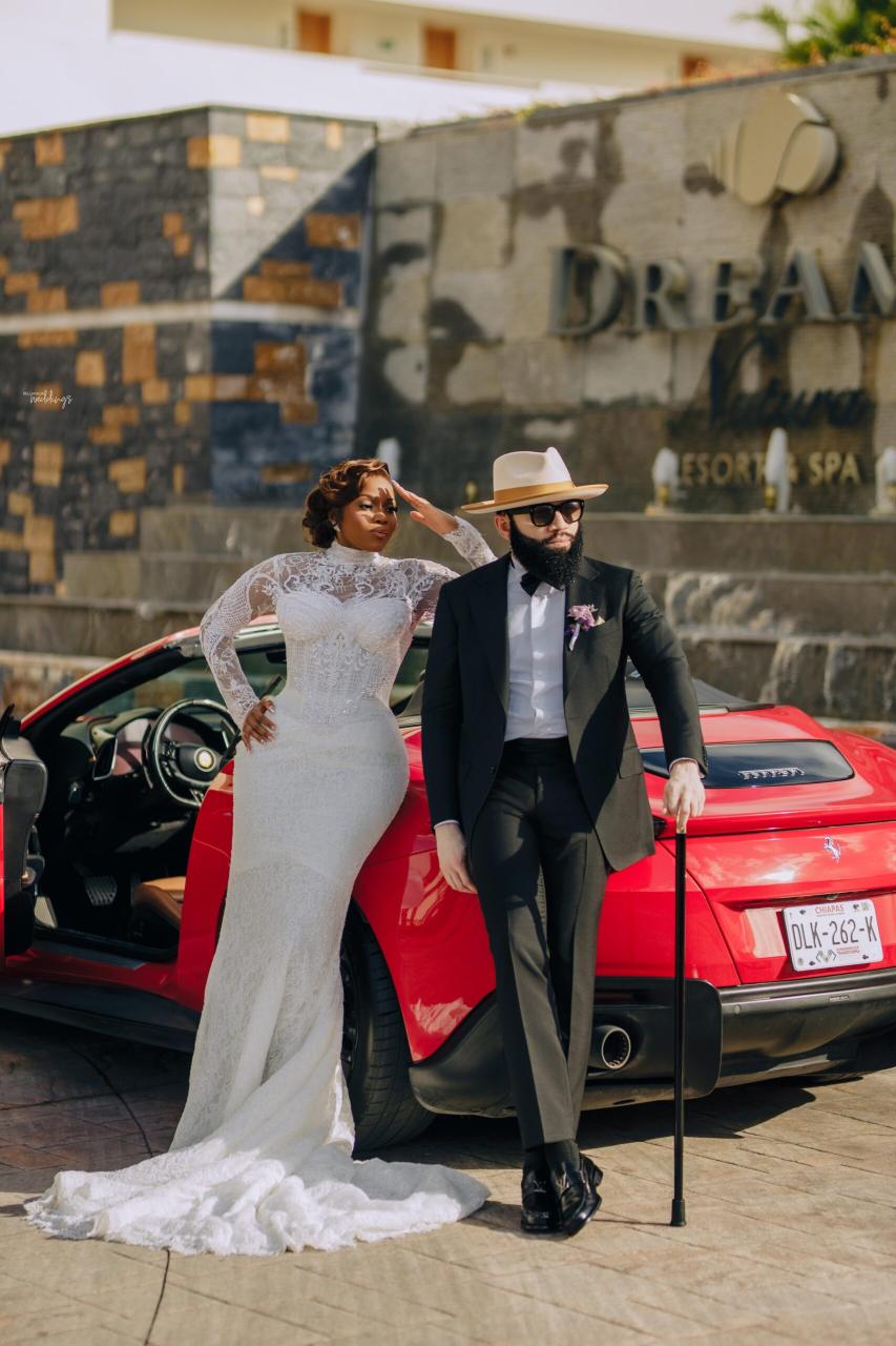 She had seen a photo of Ada in her uncle’s office, and the moment she realised Ada was single, she didn’t hesitate. She took Ada’s number and handed it straight to Nnamdi – A true matchmaker in action! Some interesting things happened along the line, and you’ll have to keep reading to get all the tea. Now, the lovebirds sealed their union in an enchanting destination white wedding in the heart of Cancun, Mexico. They both looked effortlessly radiant, elegant and definitely head over heels in love. Ada donned three fabulous outfits with Nnamdi continuously looking dapper in his crisp suit beside her. Their wedding photos are just as beautiful as their love story, and we’re so glad Nnamdi’s mum spotted this sweet union from the very beginning.