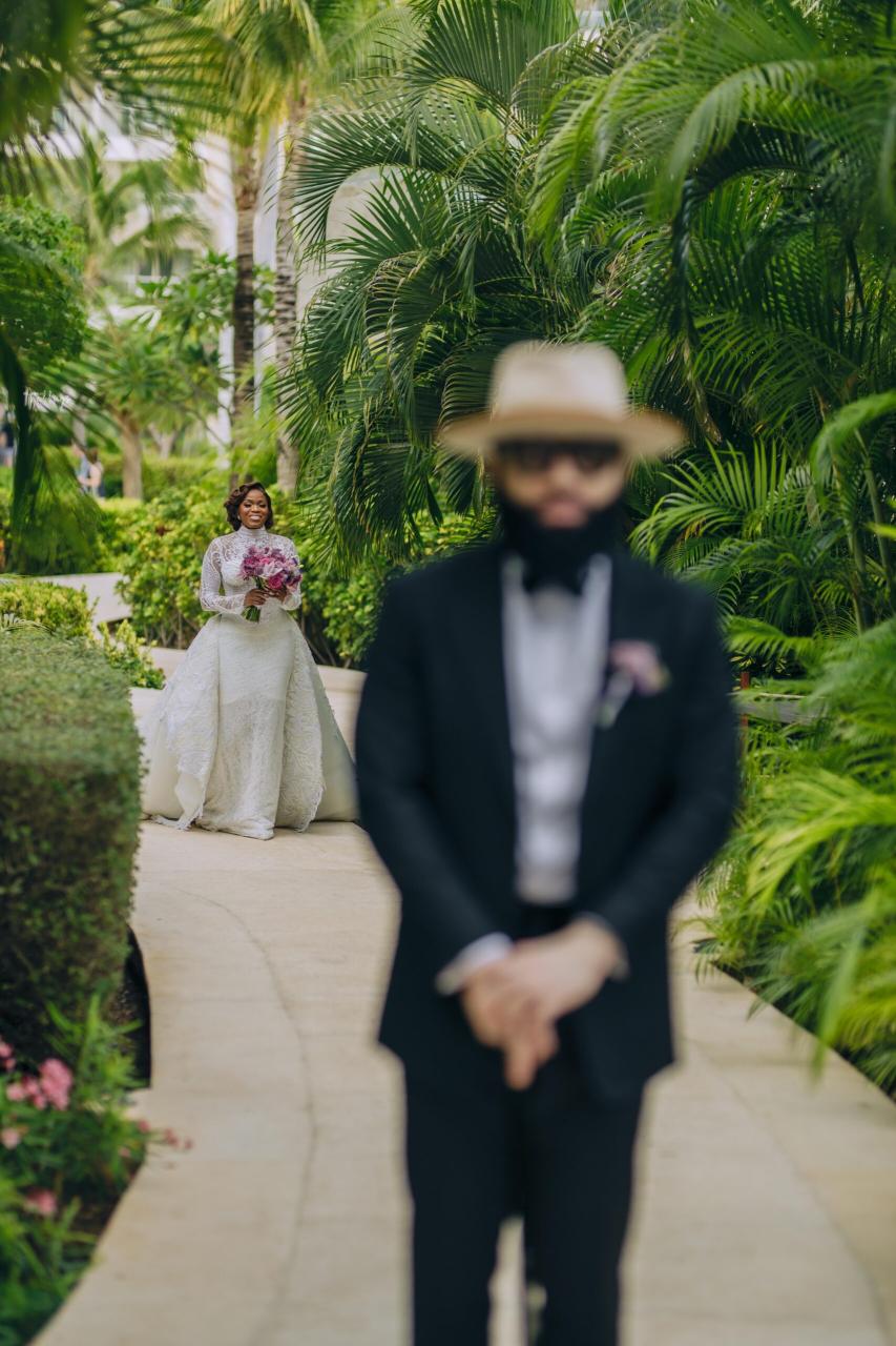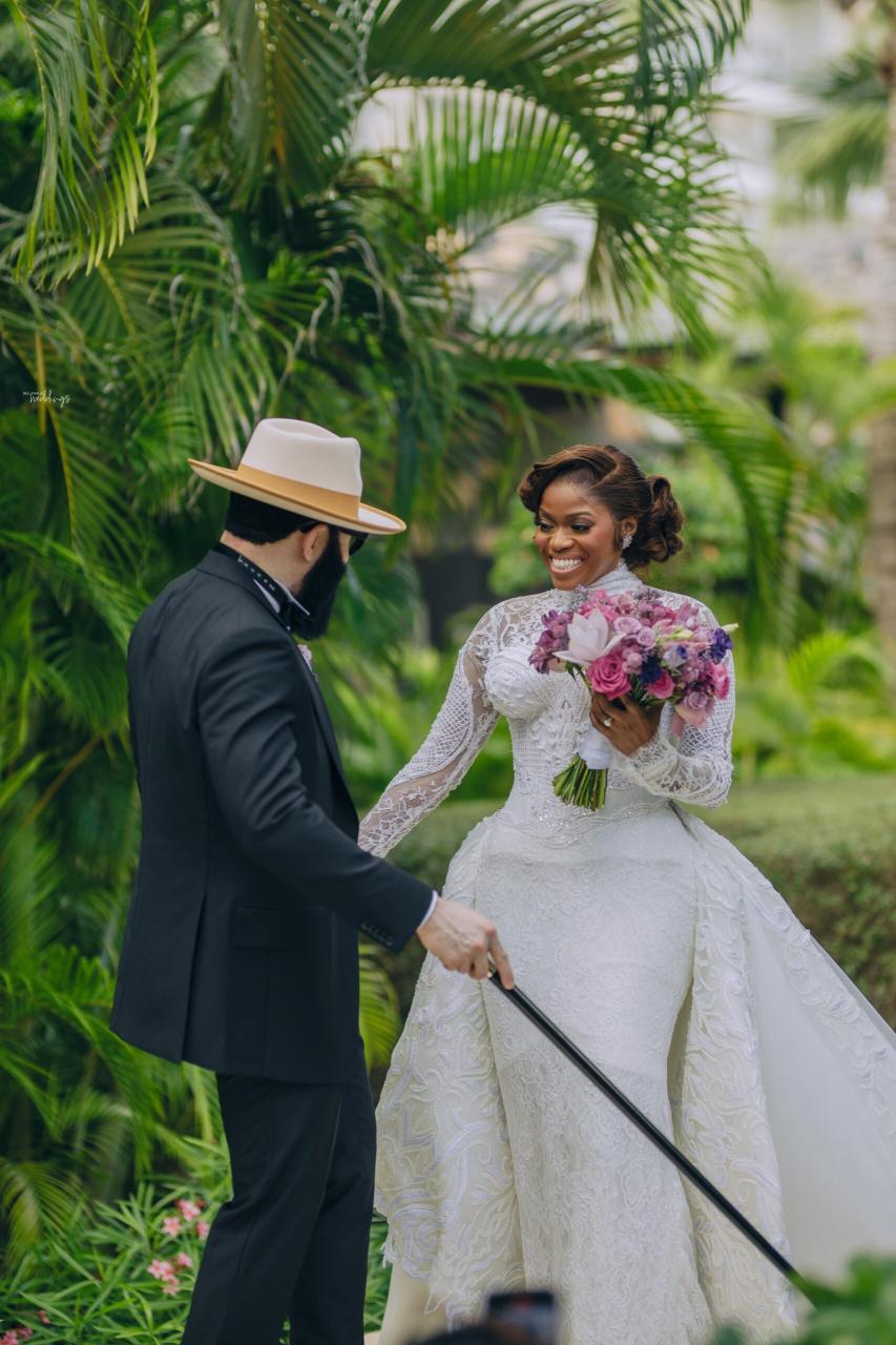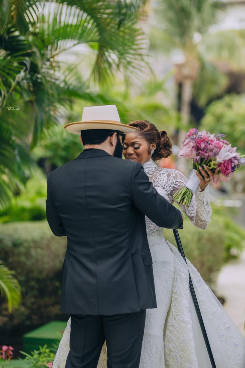 She had seen a photo of Ada in her uncle’s office, and the moment she realised Ada was single, she didn’t hesitate. She took Ada’s number and handed it straight to Nnamdi – A true matchmaker in action! Some interesting things happened along the line, and you’ll have to keep reading to get all the tea. Now, the lovebirds sealed their union in an enchanting destination white wedding in the heart of Cancun, Mexico. They both looked effortlessly radiant, elegant and definitely head over heels in love. Ada donned three fabulous outfits with Nnamdi continuously looking dapper in his crisp suit beside her. Their wedding photos are just as beautiful as their love story, and we’re so glad Nnamdi’s mum spotted this sweet union from the very beginning.