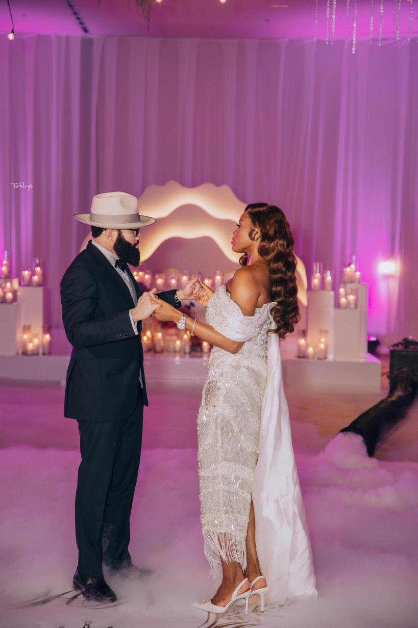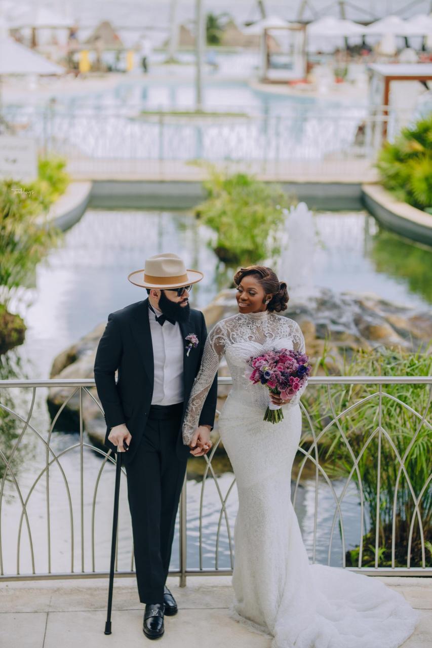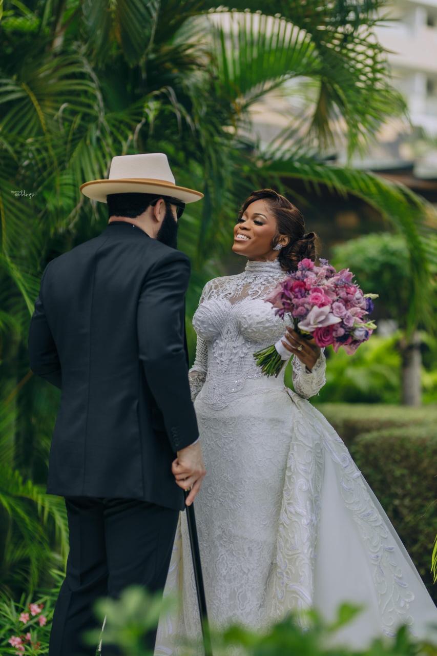 She had seen a photo of Ada in her uncle’s office, and the moment she realised Ada was single, she didn’t hesitate. She took Ada’s number and handed it straight to Nnamdi – A true matchmaker in action! Some interesting things happened along the line, and you’ll have to keep reading to get all the tea. Now, the lovebirds sealed their union in an enchanting destination white wedding in the heart of Cancun, Mexico. They both looked effortlessly radiant, elegant and definitely head over heels in love. Ada donned three fabulous outfits with Nnamdi continuously looking dapper in his crisp suit beside her. Their wedding photos are just as beautiful as their love story, and we’re so glad Nnamdi’s mum spotted this sweet union from the very beginning.