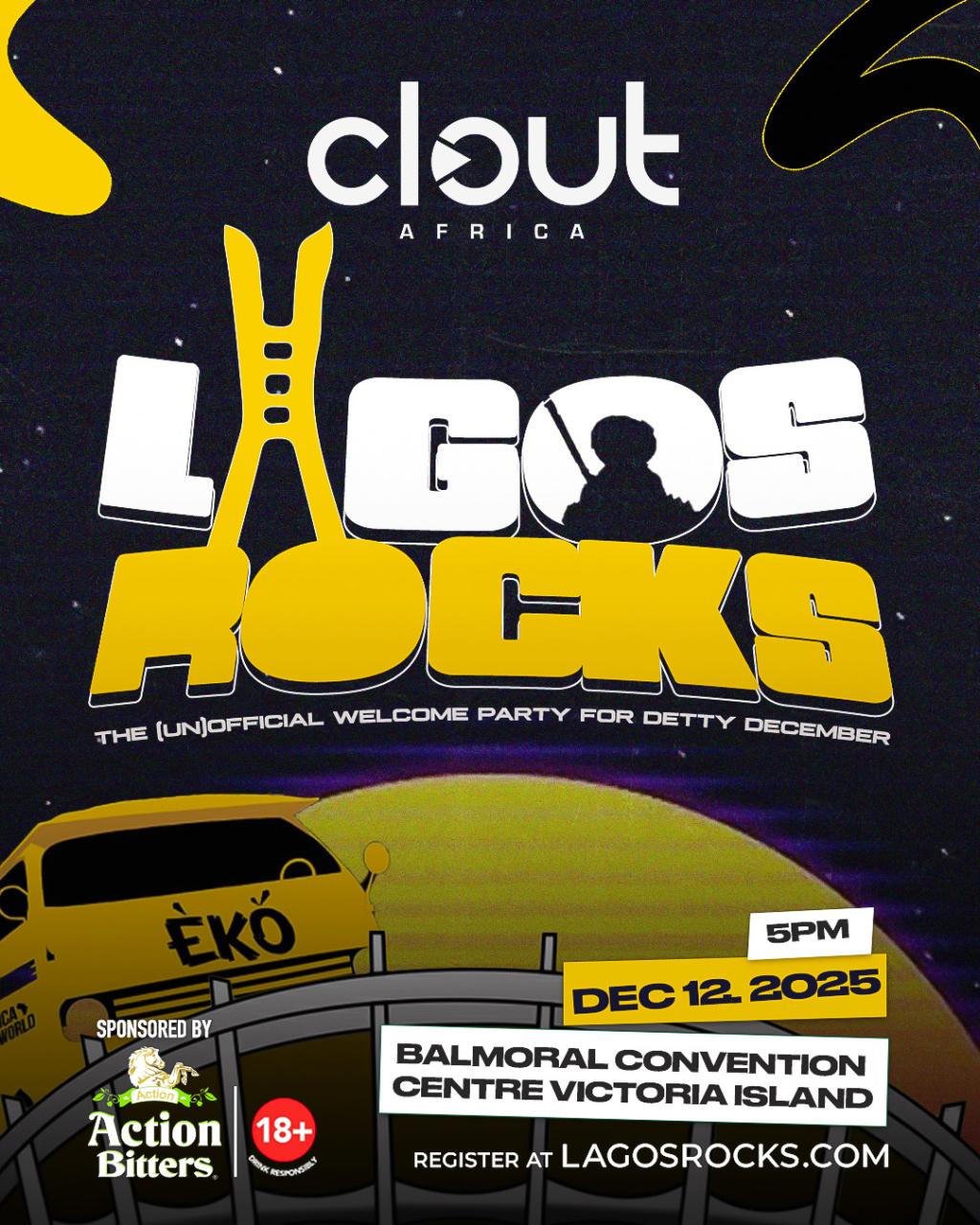Lagos Rocks is the official Detty December kick-starter. An explosive cultural moment proudly brought to you by Clout Africa, Nigeria’s leading creative hub for music, media, experiential events, talent development and youth-focused storytelling.