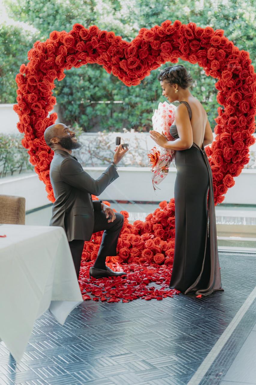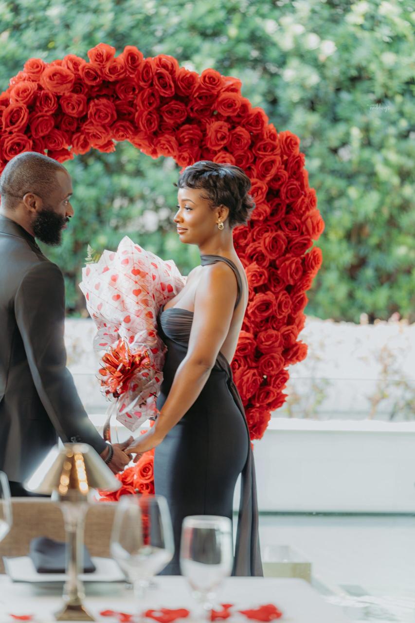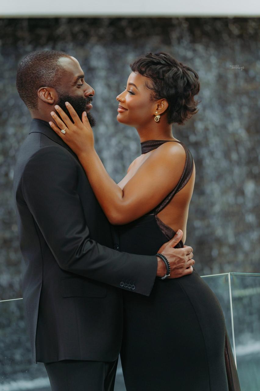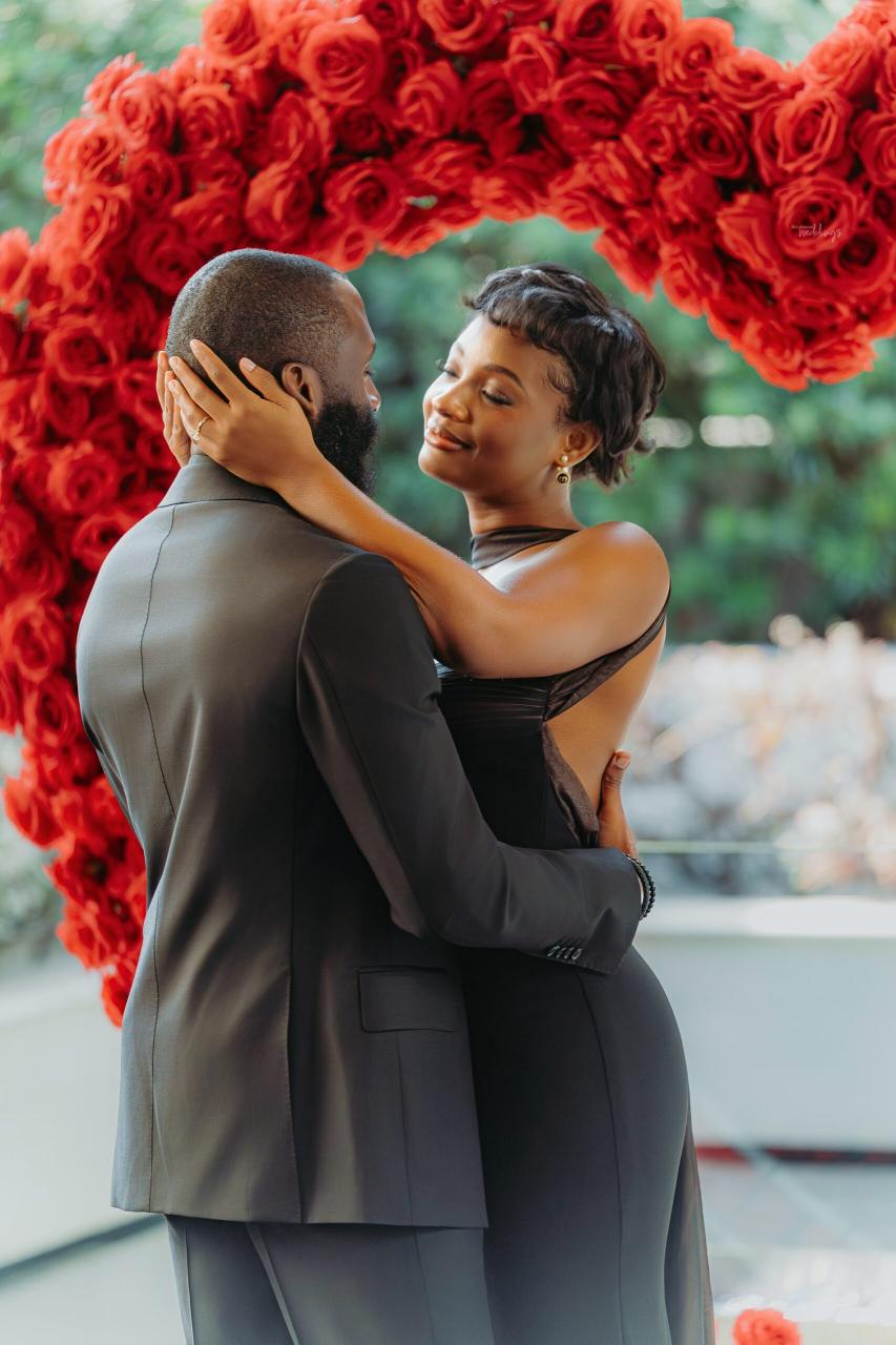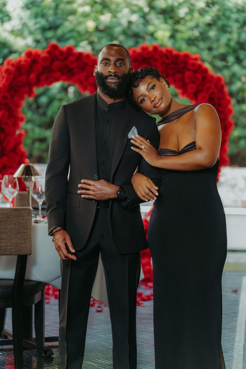This magical love story has been brewing for many years, ever since Chisom was a teenager. She had stumbled upon the name “Ketandu” and fallen in love with it. What she didn’t know was that many years later, someone who bore a very similar name would find her on Instagram, and they would fall head over heels in love. Once she saw Kesandu’s friend request, she knew immediately that fate was working its magic. Without any hesitation, she opened herself to the beautiful possibilities, and oh, she was not disappointed at all! The outcome? A deep connection that has led them to their absolutely romantic proposal in Houston! Kesandu planned this beautiful surprise for her in her favourite restaurant. Against the stunning floral setup, Kesandu got down on one knee to ask that special question, and Chisom said yes! Now forever is so nearby, and we are delighted to share in their joy. Their proposal photos tell a tale of electric chemistry, sweet love and romance. Each frame of their elegant black tie look warms our hearts deeply, confirming that truly theirs is a love written in the stars. 😍