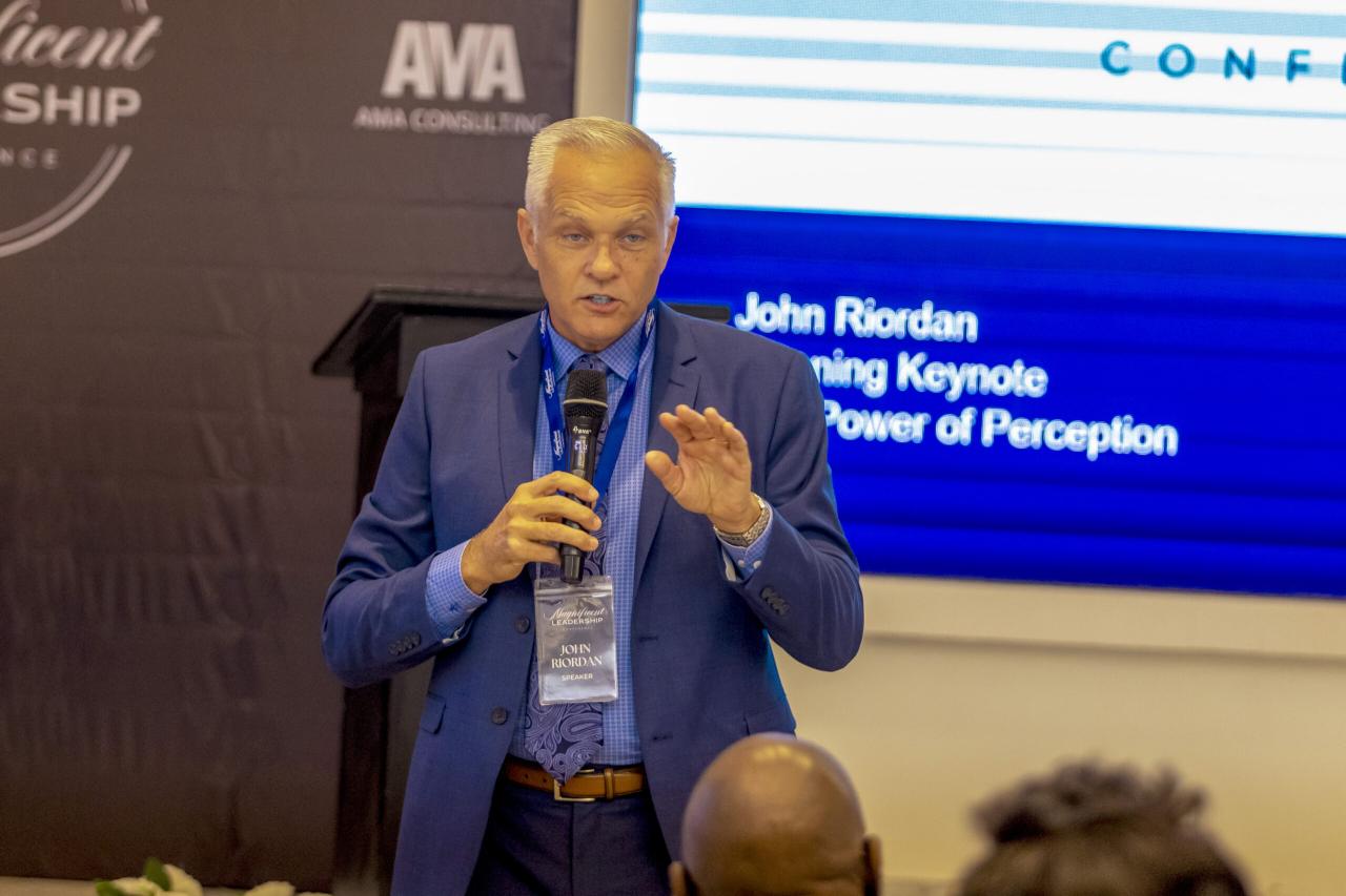John Riordan, Leadership and Organisation Development Consultant, delivering the morning keynote on Power of Perceptions at the 2025 conference debut in Abuja.