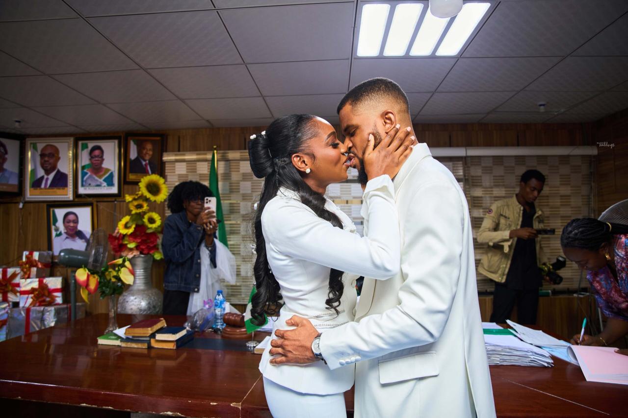 For Jennifer and Nifemi, this situation came alive in their beautiful love story; two people who shared parallel lives, attending the same school without having a single conversation. Years later, their worlds collided, and they met at a mutual friend’s event. They started working together and building a friendship that eventually deepened into a relationship bound by sweet love and devotion. Now the lovebirds have gone the extra mile into the next chapter of their lives, sealing their story in a beautiful civil wedding! The lovely duo were a vision of pure elegance in their stunning attire, radiating electric chemistry throughout their lovely wedding photos. Theirs is indeed a love that was always meant to be; once parallel, now very much aligned, forever.