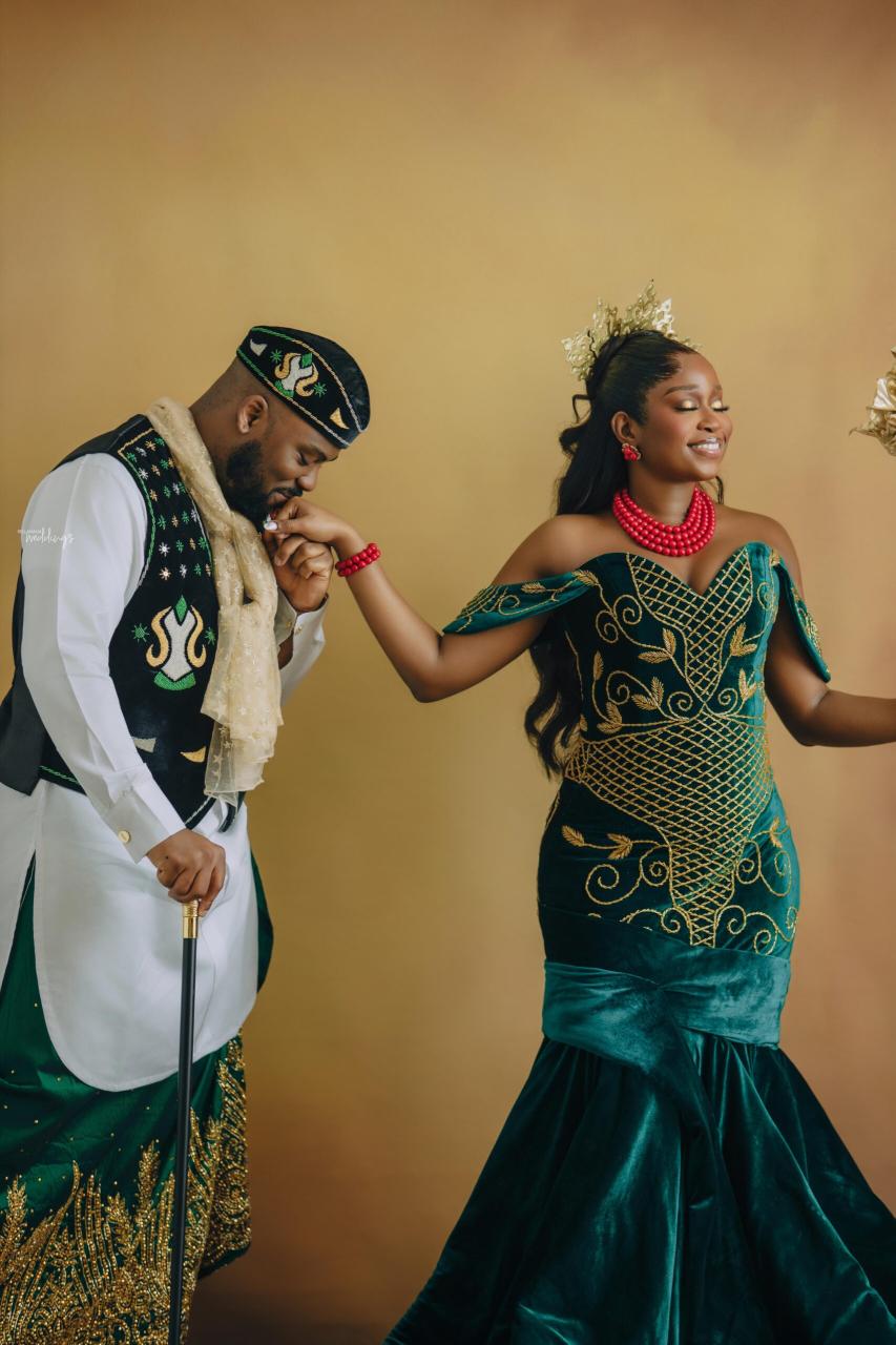 It was as if a guardian angel was directing her steps when she decided to stay back instead of travelling to a wedding. Since that plan fell through, her friend invited her to a party instead, and there, she met Eke. Fate really had her where she was truly meant to be! From the minute he walked in, he had his eyes on her. Once the party ended, they exchanged numbers. They started talking, and soon their connection grew deeper. A month into this sweet friendship, he asked her out, and she said yes! Ever since then, they’ve spent time loving themselves endlessly. Now they have sealed their sweet love story with an enchanting Igbo-Efik traditional wedding. Peace made a stunning bride in her fabulous attire, with Eke channelling his regal style throughout. Both of them look so radiant, beaming with love in their beautiful wedding photos, and we are so glad to see their forever set forth. 😍