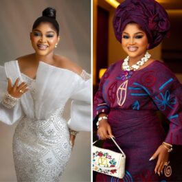 • Mercy Aigbe Kicked Off the Year in Purple Aso-Oke and a White Gown